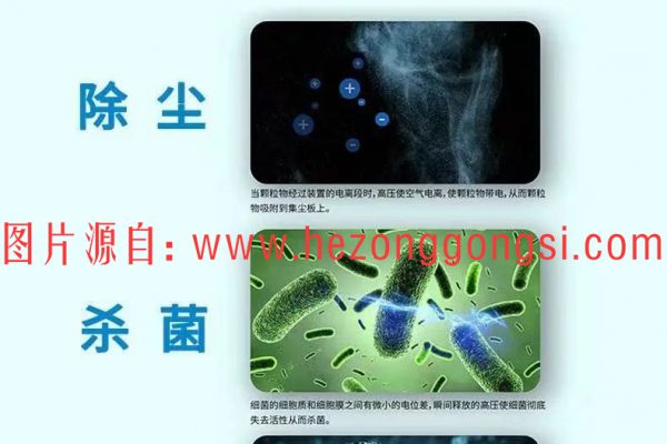 同时产生的正离子与负离子在空气中进行正负电荷碰撞瞬间产生巨大的能量释放,极易与细菌、霉菌、芽孢和病毒中蛋白质和核酸物质发生反应而使其变性,从而使各类微生物死亡,起到杀菌的作用。